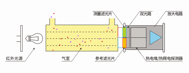 ×ÛÉÏ£¬ÔÚ·â±ÕÊÒÄÚÐèҪʵʱ¼à²â¶þÑõ»¯Ì¼Å¨¶È£¬·À·¶ÊÒÄÚȱÑõ¡£NDIR¼¼Êõ¼ì²â¶þÑõ»¯Ì¼¾ßÓп¹ÆøÌå½»²æ¸ÉÈÅ£¬¼ì²â¾«¶È¸ßµÄÓÅÊÆ¡£ÒòÆä¼ì²âÔÀíÊÇ»ùÓÚÆøÌå·Ö×ÓÔÚÌØ¶¨ºìÍⲨ¶ÎµÄÎüÊÕÌØÐÔ£¬ÔÚ¶þÑõ»¯Ì¼µÄºìÍâÎüÊÕ¹âÆ×ÖУ¬Ñ¡Ôñ4.26¦Ìm½øÐмì²â£¬ÆøÌåÎüÊÕÂÊ×î¸ß£¬ºìÍâ·øÉäË¥¼õÏÔÖøÇÒË®ÆûÎüÊÕÂʽϵ͡£